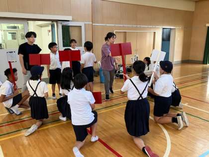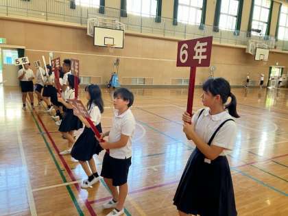 放課後、今日も児童会の運営委員の練習と応援団の練習が体育館で行われています。
