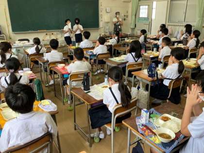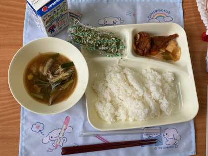 今日の給食献立は、ごはん・酢豚・焼きのり・中華味噌スープ・牛乳です。
