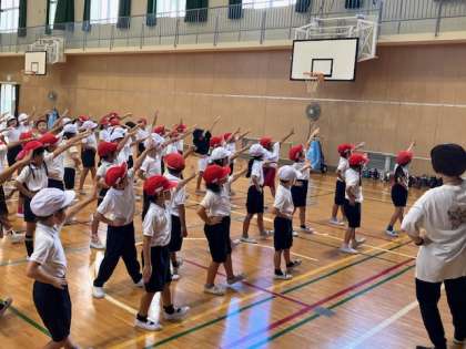 「できっこないをやらなくちゃ」と「やってみよう」のダンス、ビシッと決める練習をしていました。