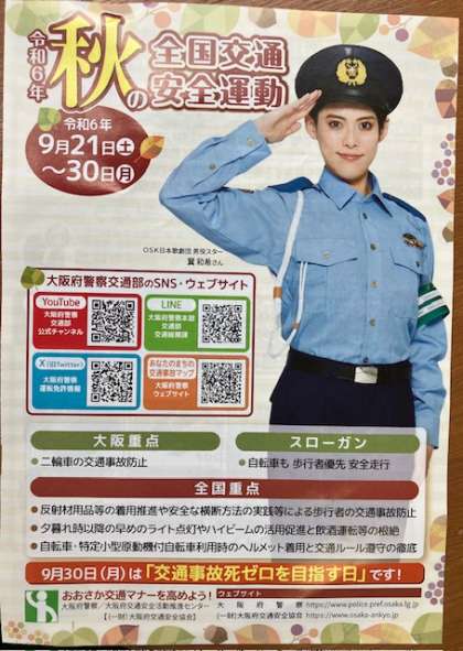 現在、秋の全国交通安全運動期間中です。皆さんも交通安全に特に気をつけましょう!
