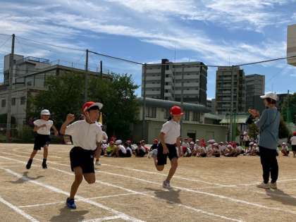 今日の2年生の練習は、徒競走です。50メートルを全力で走ります。