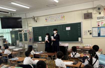 今月の保健目標は「目を大切にしよう」です。「スマホやゲームで視力が低下している人がすごく増えています。目に優しい生活をしましょう!」と話してくれました。