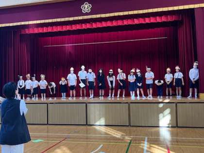 今日は舞台を使った初めての練習でしたが、なんとなくいい感じでした。明日からは、毎日昼休みに講堂で特訓予定です。