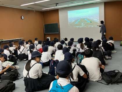 映像で古墳についての学習をしました。古墳の作り方や、世界遺産になった仁徳天皇陵、百舌鳥古墳群について、わかりやすい説明をしてくれました。