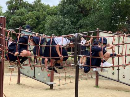 昼食後は、プレイタイムです。遊具広場で遊び放題。
