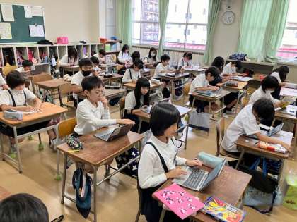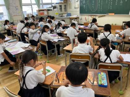 研究授業中、先生たちが自分の教室を離れていましたが、子どもたちは、静かに頑張って学習していました。