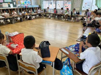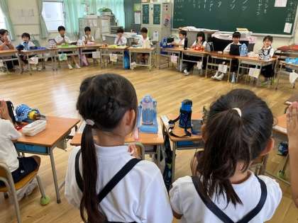 今日、1年生は遠足の予定でしたが、天気の関係で延期となりました。給食はストップになっているので、遠足用のお弁当を学校で食べます。
