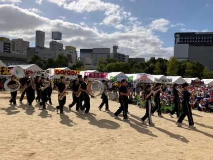 開会式の初めは入場行進です。新豊崎中学校音楽部も演奏してます!