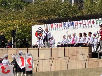 区民カーニバルの実行委員長からのあいさつで始まりました。子どもたちもちゃんと聞いてます。
