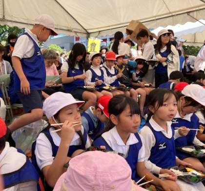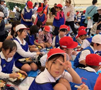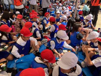とりあえず、気を取り直して、お弁当!大人も子どもも、ぎゅうぎゅう〜!コロナ時代では見られない風景〜!