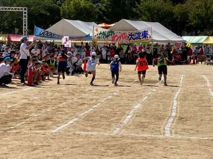 小学生、中学生、それ以上の大人でのリレー予選。