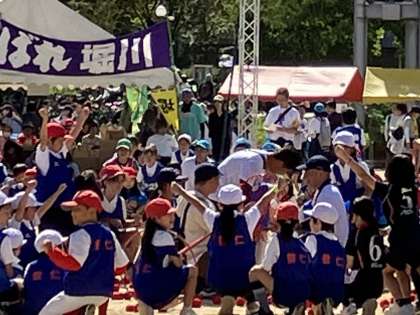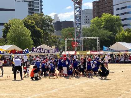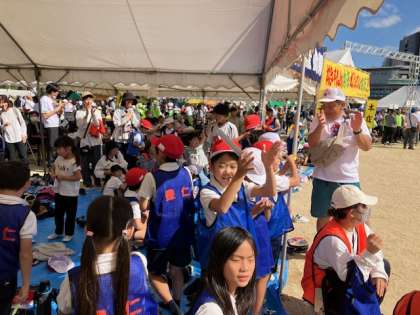 玉入れ、小学生の部。健闘!やりました〜!勝ちました!