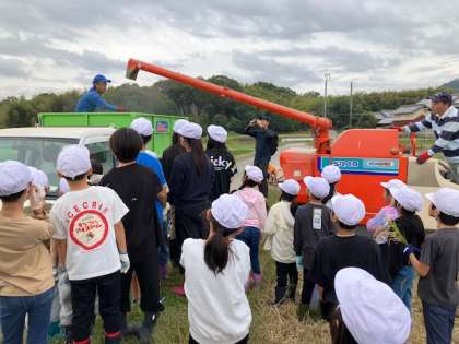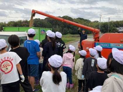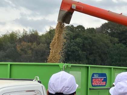 コンバインから獲れたお米が出てきました。これはもち米だそうです。