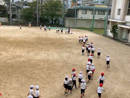 1年生の体育の時間。来月のマラソン記録会に向けての練習が始まりました。運動場をゆっくりと走りますが、1年生なので慣れてないので、すぐに疲れてしまいました。元気な子どもたちなので、練習を重ねたらしっかり走れるようになります。これからですね。