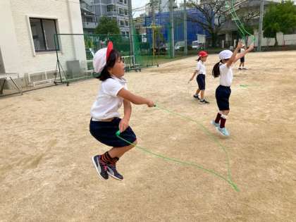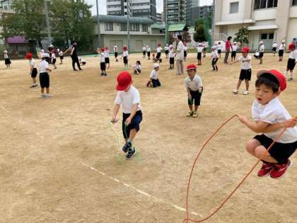 その後、来年のなわとび週間に向けて、なわとびの練習をしました。それぞれの段階で楽しく跳んでくださいね〜!自然とだんだんと上手になりますよ!