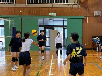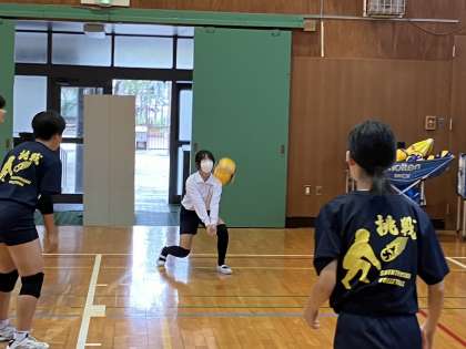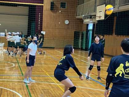 女子バレーボール部。きっちりとした基礎練習を積んでいるようで、先輩たちのフォームや動きが素敵です!