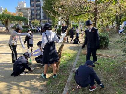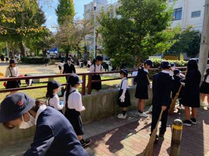 遊んでいるような子もなく、縦割り班なので、高学年の児童が低学年の子を助けながら一生懸命に草取りをしてくれています!
