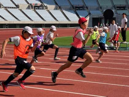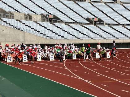 世界陸上で世界のトップ選手が走ったコースを走ります。豊仁、頑張ってます!!
