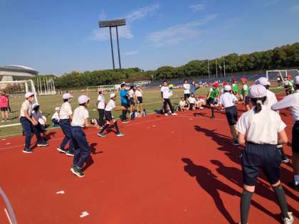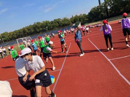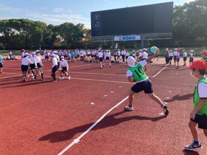 豊仁小学校はまずドッジボール。6年生で体格の大きな子は、すごいボールを投げてきます。恐怖!?