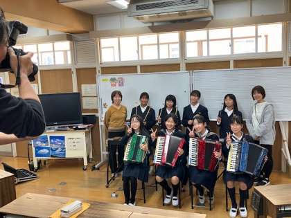ミュージッククラブ。今は「ゴジラ」に取り組んでいます。 ガォー!!ではなく、はい、ピース!