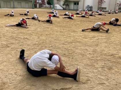柔軟性が豊仁小学校の弱点だったので、数年前から体育の時間の初めには、必ず柔軟体操を入れてきました。