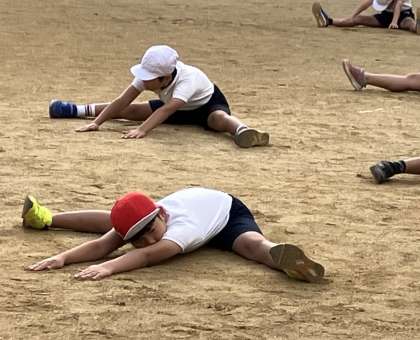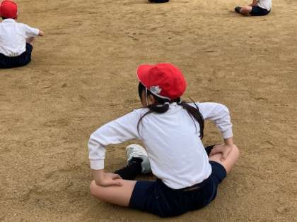 3年生の体育の時間。まず、準備体操と柔軟体操をします。