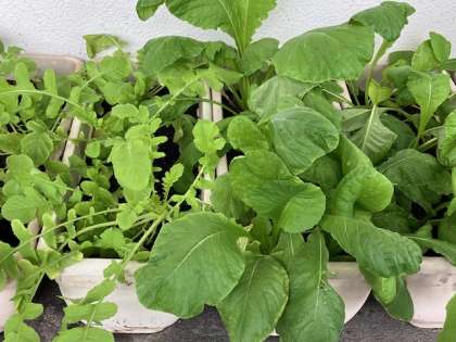 3年生が階段の踊り場で育てている野菜。ずいぶんと大きくなりました!