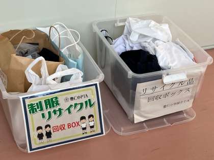 今日は授業参観だったので、PTA活動の「制服リサイクル」の回収日とさせていただきました。