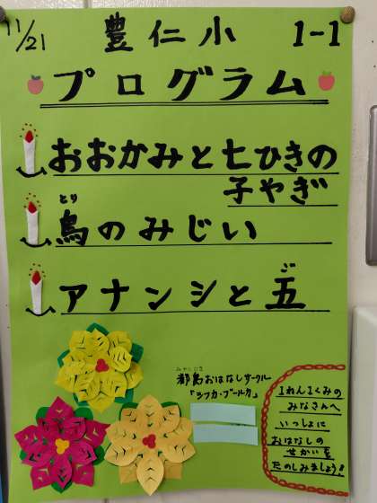 今日は、シフカブールカの皆さんに来ていただき、読み聞かせの会をしました。読み手の方のお話に子どもたちは引き込まれ、あっという間の45分でした。