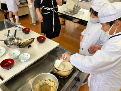 味噌汁も美味しくできつつあります。ご飯もふっくら出来上がりました!