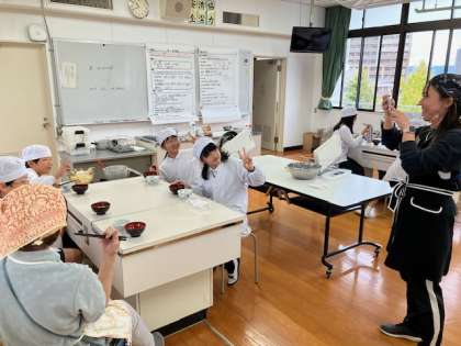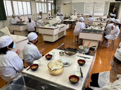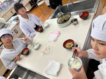 「美味しい調理実習のご飯と味噌汁を、いただきます!」