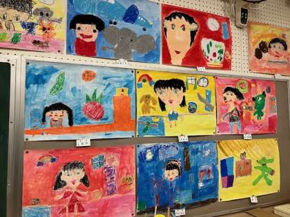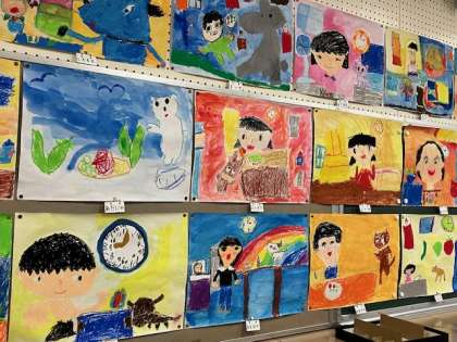 1年生国語の教科書の中のお話「サラダでげんき」。その中の好きな場面を絵にしました。