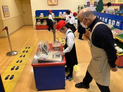 お買い物ごっこもできます。ちゃんとレジもあって、ぴ〜!します。