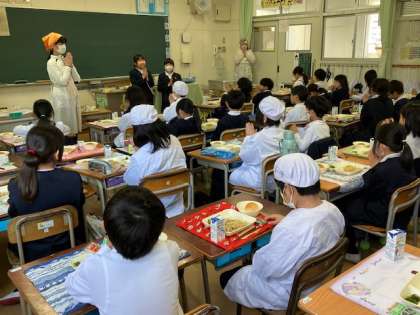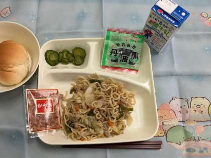 今日の給食献立は、ミニコッペパン・和風焼きそば・ソフト黒豆・牛乳です。