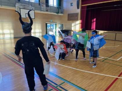 講堂では、運営委員会が何かの練習をしていました。どうも、今週、何かするようです!