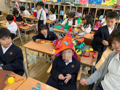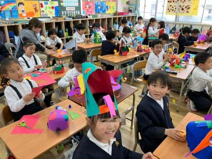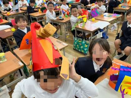 色画用紙で作りますが、どの帽子も超ド派手な帽子ですね!みんながこんな帽子を被ってる未来って、明るくて楽しい世界ですね、きっと!