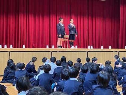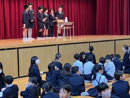 集会でゲームをした後、児童会運営委員会からの連絡がありました。