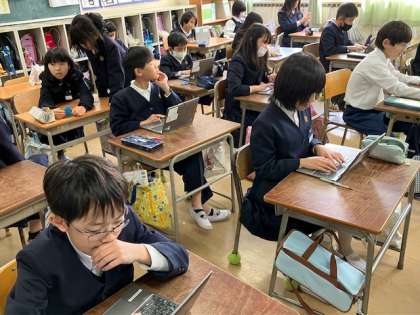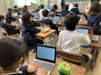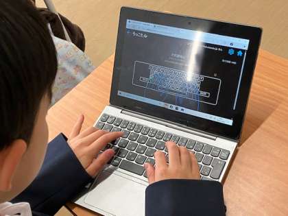 タイピングのアプリをかつよして、手の置き方、指運びが画面に出るので、それに沿ってそれぞれが練習します。