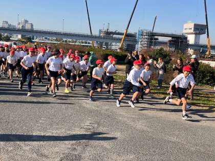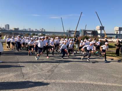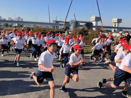 火曜日、マラソン記録会を行いました。淀川の河川敷、毛馬のこう門のすぐそばで、冬晴れの中、みんな元気に走りました。
