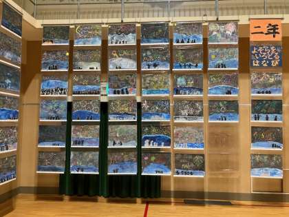 2年生は、図画が「夜空をいろどる花火」、工作が「かぶってへんしん」