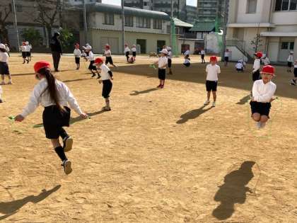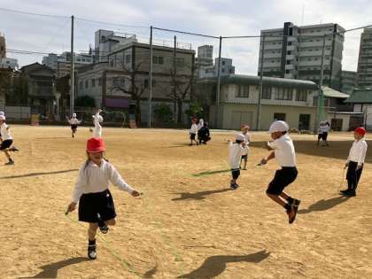 なわとびに取り組んでいます。年明けにはなわとび週間があるので、少しずつ跳べるようになるよう、頑張ってます!