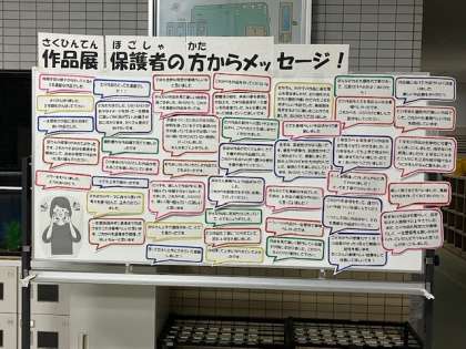 作品展について、大勢の保護者の皆さんがメッセージを書いてくださいました。