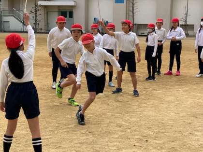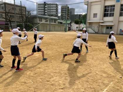 4年生の体育の授業。これまでの経験があるので、4年生ともなると、次々とつながって連続で跳んでいくこともできたりします。