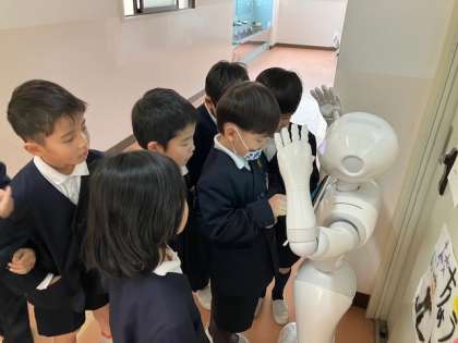 いつも通り、休み時間は1年生にまとわりつかれてとってもうれしそうです。