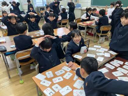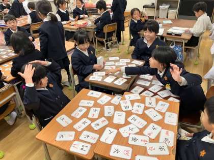 2年生。お正月らしく、かるたや百人一首で盛り上がってます!