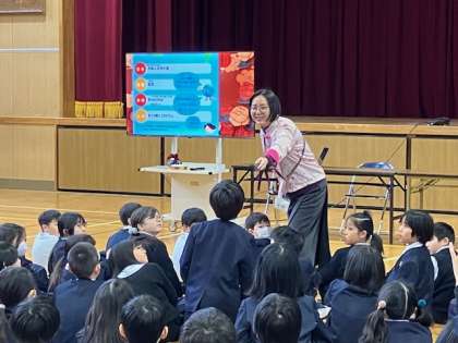 午後、3年生・4年生合同で多文化の授業を行いました。