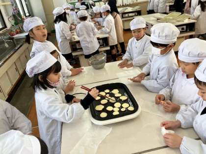 2年生でお芋パーティーが開催されました。学校の農園で収穫したさつま芋と、買ってきたお芋を切って焼いて食べます!