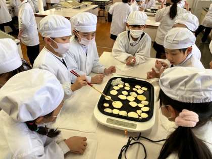 ホットプレートに油ををひいて裏表を焼いたら完成です。美味しそうな甘い匂いの中、裏返す作業も超楽しい〜!