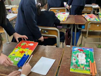 3年生の工作では「クギ打ちゲーム」を作りました。板に絵を描いて、色を塗って、クギを打ちました。