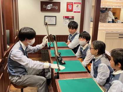 鑑定士の修行です。格好がそれなりなので、なかなか様になってます!